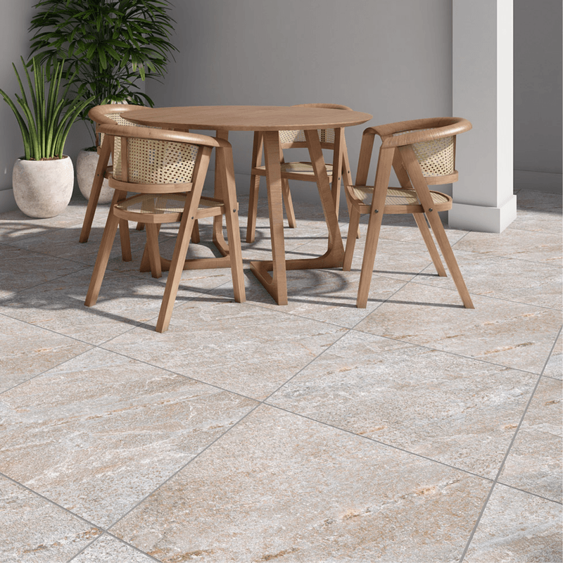 rustico e moderno. A aderencia do piso Solo ¿ granilhada, evitando escorregoes